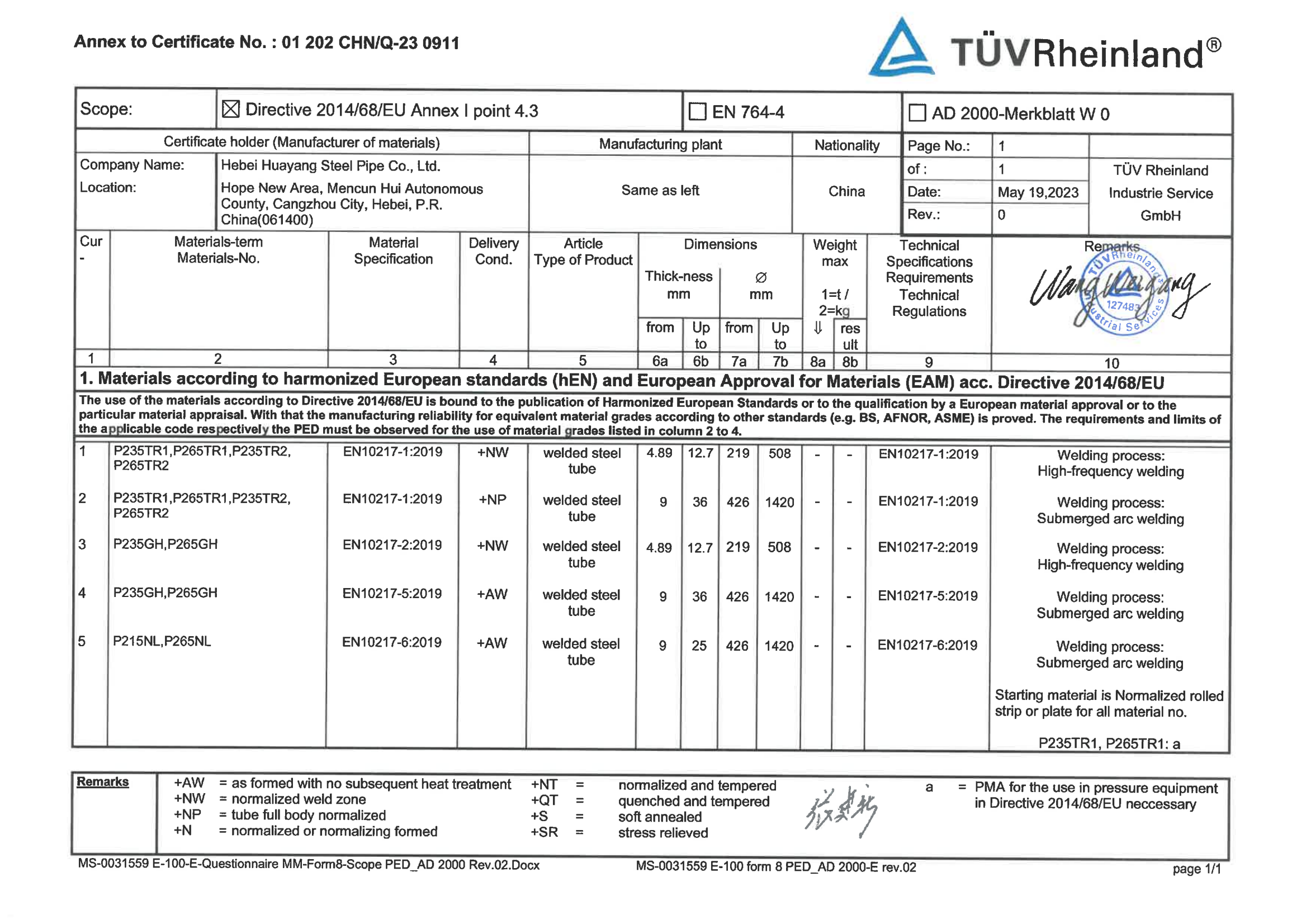 河北華洋鋼管有限公司公司創建于2005年,注冊資金5億元,公司占地面積1000余畝,固定資產12億元,年銷售收入近100億元,現有員工600余人。“華洋牌"高頻直焊鋼管被評為“河北省名牌產品”,年生產能力可達260萬噸,2024年河北華洋鋼管有限公司榮獲河北省百強民營企業(69位),河北省百強制造業(57位)榮譽稱號。